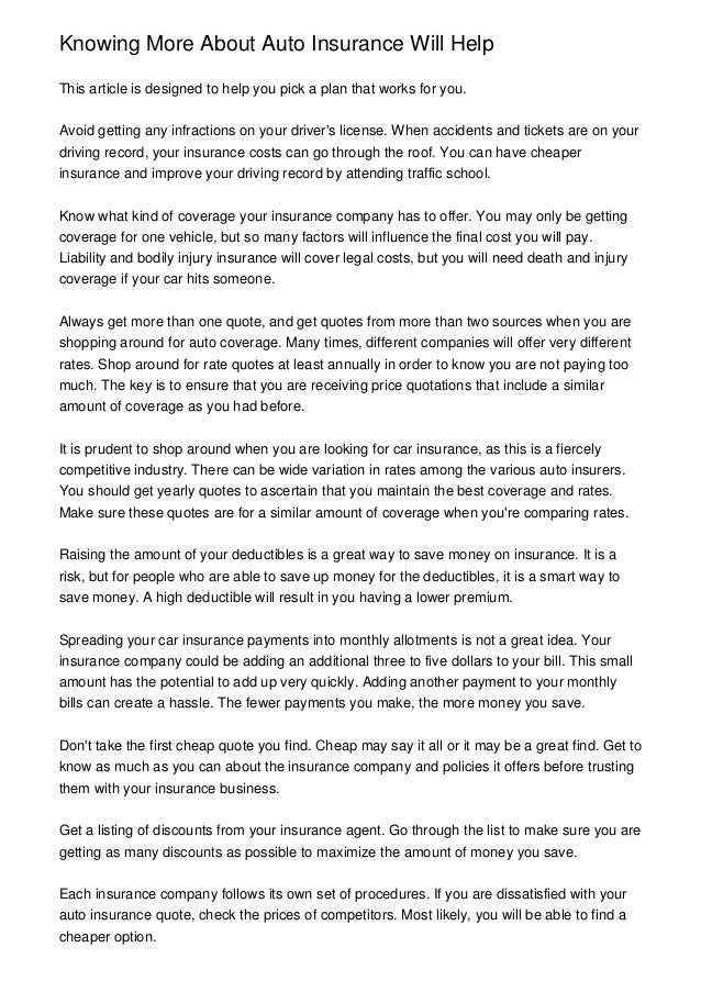 Knowing More About Auto Insurance Will Help